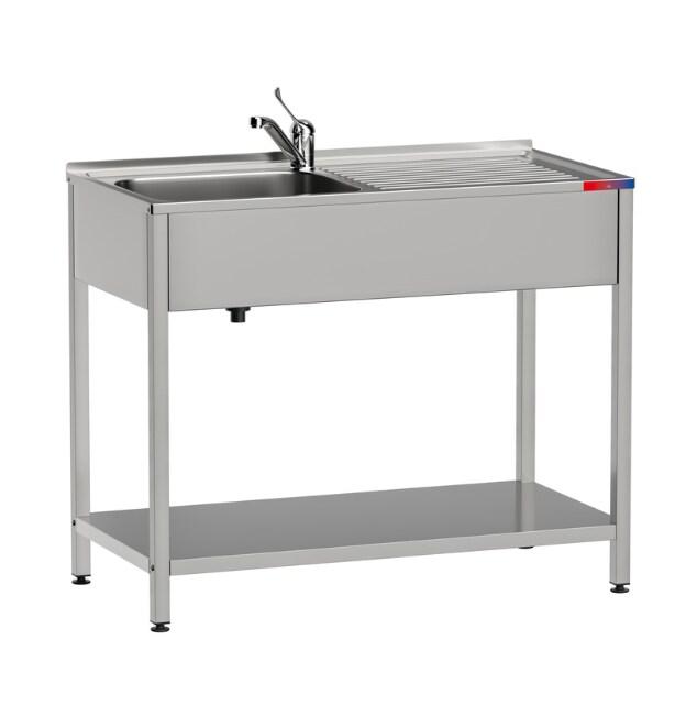 Evier industriel en acier inoxydable 1000x500x850mm avec 1 bac et 1 égouttoir. Livré démonté, avec vis pour un montage rapide. Fabriqué en acier inoxydable AISI 304 avec finition polie satinée, idéal pour la manipulation des aliments dans les cuisines des bars et des restaurants, également i