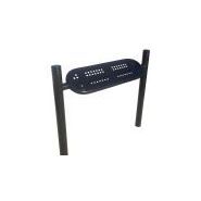 Caractéristiques principales : - Piètement en tube acier de 76mm. - 4 pommeaux au choix. - Tôle acier perforée de 2,5mm, avec plis écrasés et angles arrondis de sécurité aux extrémités. - Dimensions : - Longueur d'assise : 900mm - Longueur totale : 1112mm - Largeur d'assise : 250mm