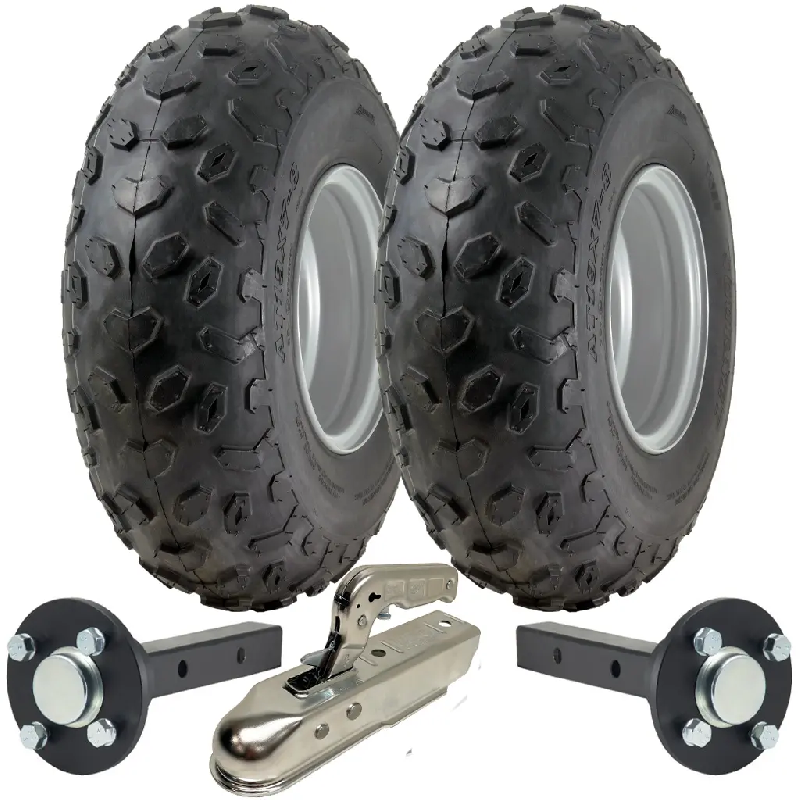 For sale is 1 brand new - 19x7.00-8 ATV trailer kit.This Kit includes:Two: 19x7.00-8 WheelsTwo: Hub amp; Stub axles.One: Pressed steel Tow hitch.These are rugged ATV tyres.
