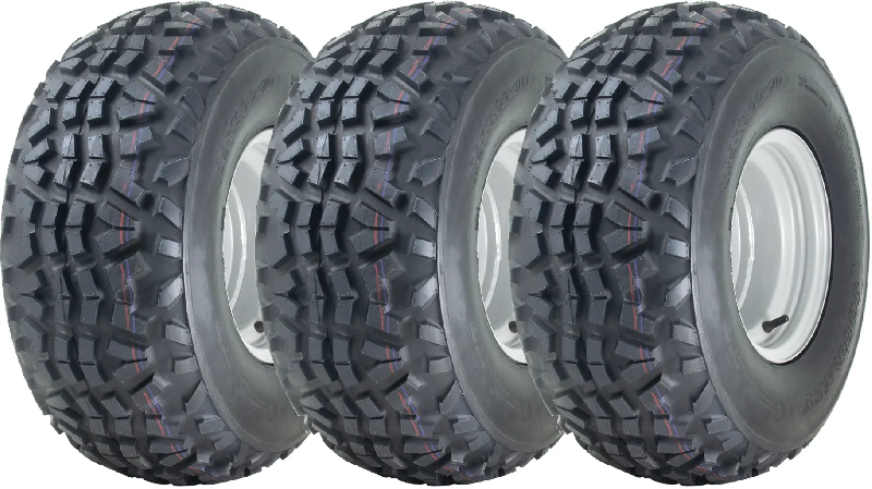 A vendre 3 pneus ATV Wanda P3077 23x11.00 - 10 neufs. - Ce sont des pneus ATV robustes. - Ce sont des pneus sans chambre à air. - Ce sont des pneus 4 plis très résistants avec une profondeur de sculpture de 14mm. - Les dimensions de l'article sont les suivantes : - Diamètre total : 602mm,