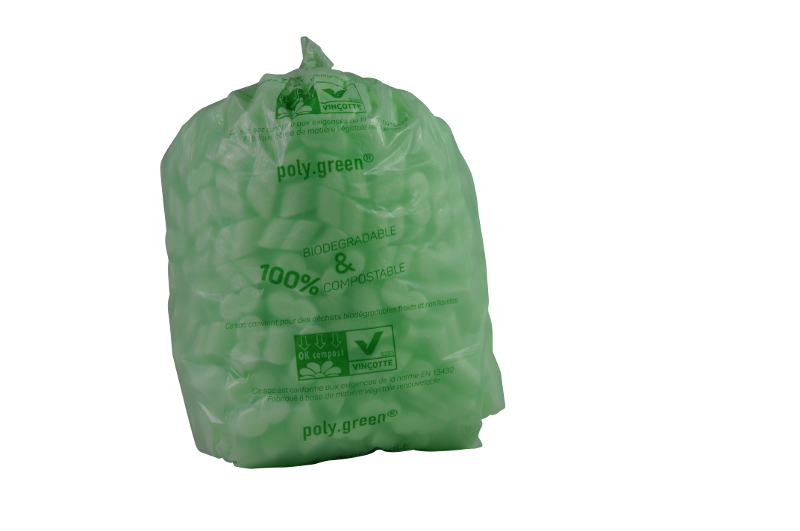 Sacs type poubelle pour déchets verts, organiques Norme : EN 13432 (Compostage industriel) Matière : Compostable - blanc Dimensions : 680x820 mm Epaisseur : 28 microns Litrage : 60 litres Impression : Oui - logo EN13432 Fermeture par lien dans le soufflets Ces sacs s'adaptent facilement à