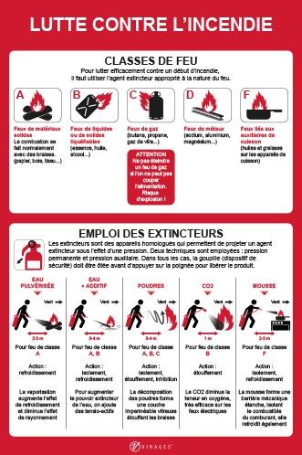 Panneau consignes de sécurité pour incendie, classes de feu.
