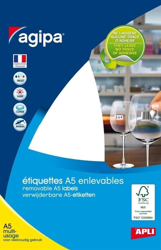 Pour usage manuel, et tous types d'imprimantes et photocopieurs supportant le format A5. Adhésif permettant de retirer l'étiquette sans laisser de traces. Gabarits en ligne sur apli-agipa.