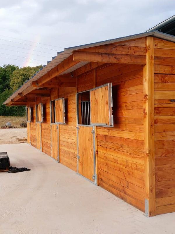 Ligne de 4 boxes en Bois Douglas - robustesse et esthétisme pour installations équestres