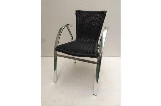 Chaise empilable Saint Tropez noir - Référence 42 - Métal et tressé, avec accoudoirs - Utilisable en extérieur