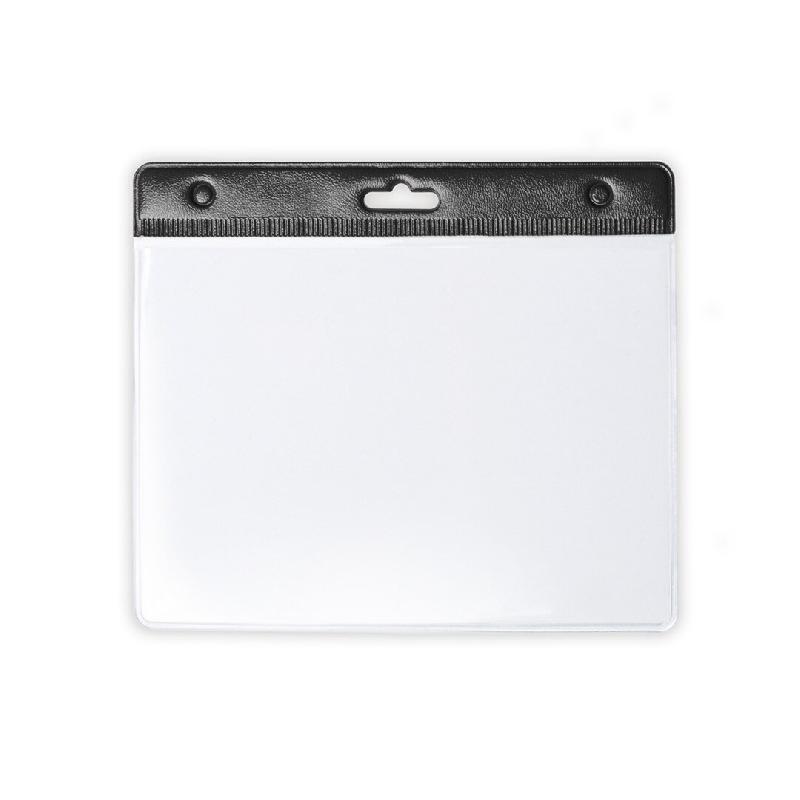 Porte - badge semi - rigide double - Protection 1 face - Matière : Polypropylène - Présentation : Horizontale (paysage) - Perforation : oblongue + 2 rondes - Insertion latérale des 2 côtés - Format carte : 86 x 54 mm - Coloris : Noir - Référence : ZEPHYR - 05HK2