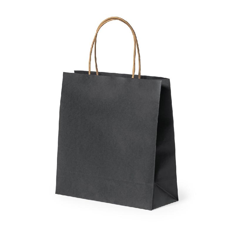 Sac fabriqué en papier recyclé avec finition noire de 100 g/m², avec des poignées courtes renforcées en ton naturel et soufflet à la base et sur les côtés. Résistant jusqu'à 6 kg. 25 x 31 x 11 cm | 40 g. - Prix de livraison : 82.80 € - Délai de livraison : 5 - 16 jours ouvrés