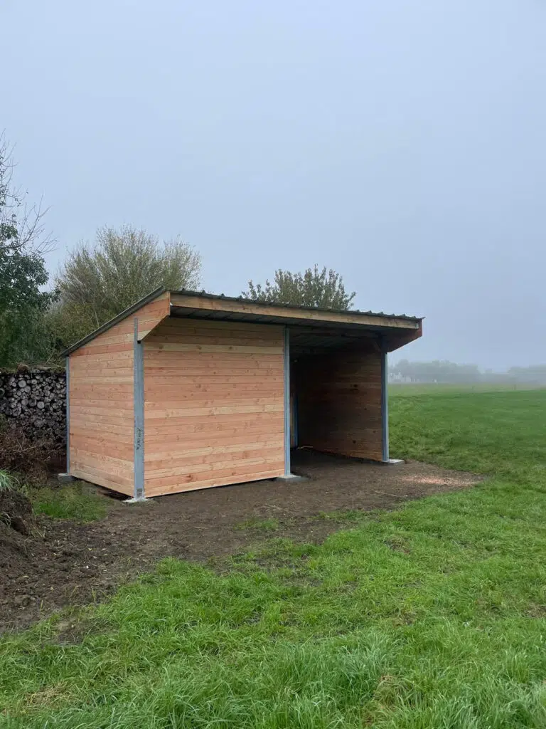 Abri avec retour PRO - ABR018-1 - LCI Cheval - Bois Douglas et poteaux métalliques
