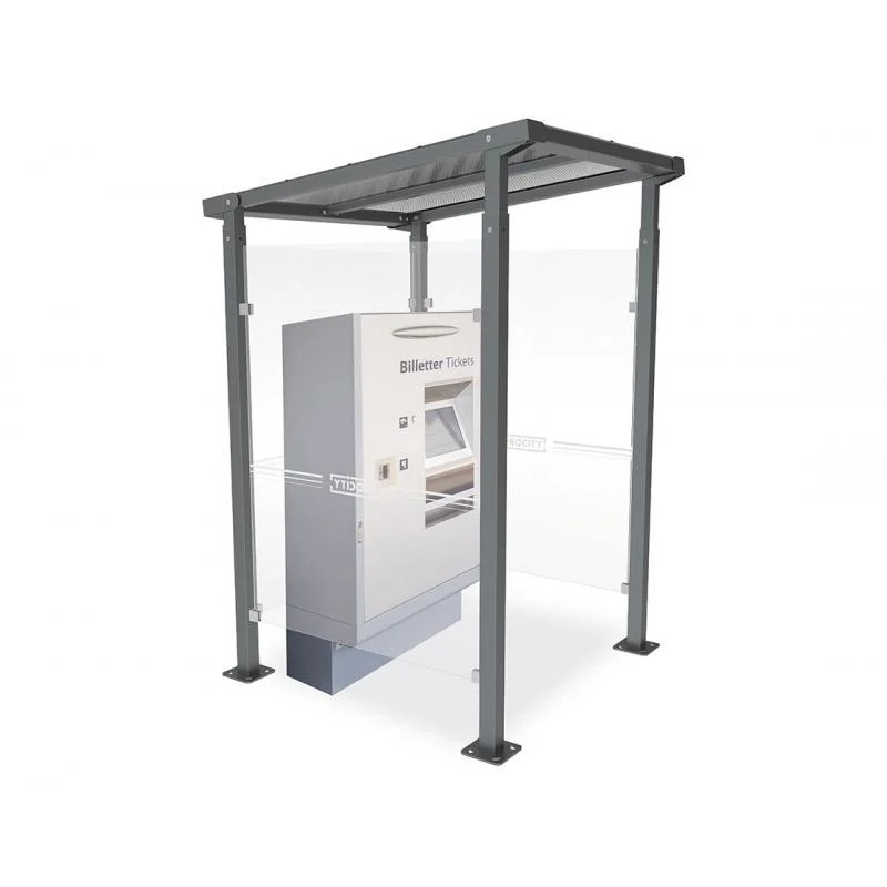 Descriptif Technique : - Structure tube acier galvanisé et peint. - Paroi en vitrage sécurit. - Toiture en Bac Acier. - Visserie inox "classe A2". - Fixation des pieds réglables par scellement chimique.