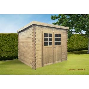 Abri de jardin en bois 19mm - toit monopente - S8607 sans plancher - 7,88 m² avec double porte vitrée