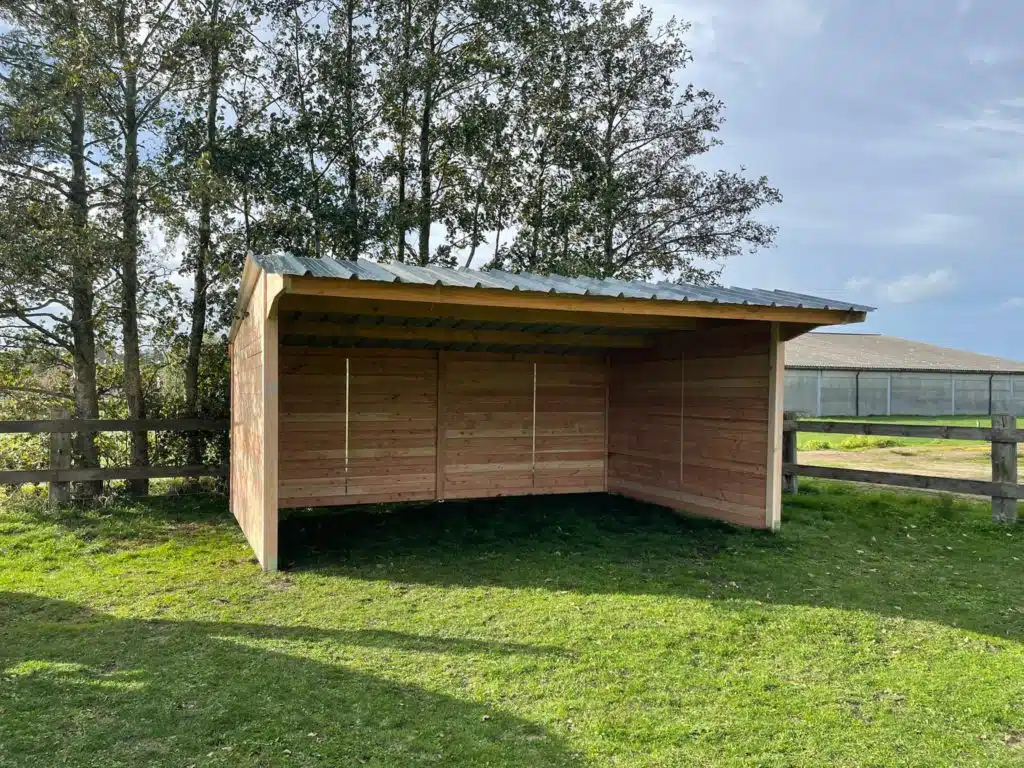 Notre module Abri de prairie 4 x 6 m bois Douglas est conçu pour stocker et protéger vos chevaux. La structure permet aux chevaux d'y trouver refuge et au foin d'y être stocké. De plus, l'abri vous assure un gain de temps considérable dans la manutention du fourrage.