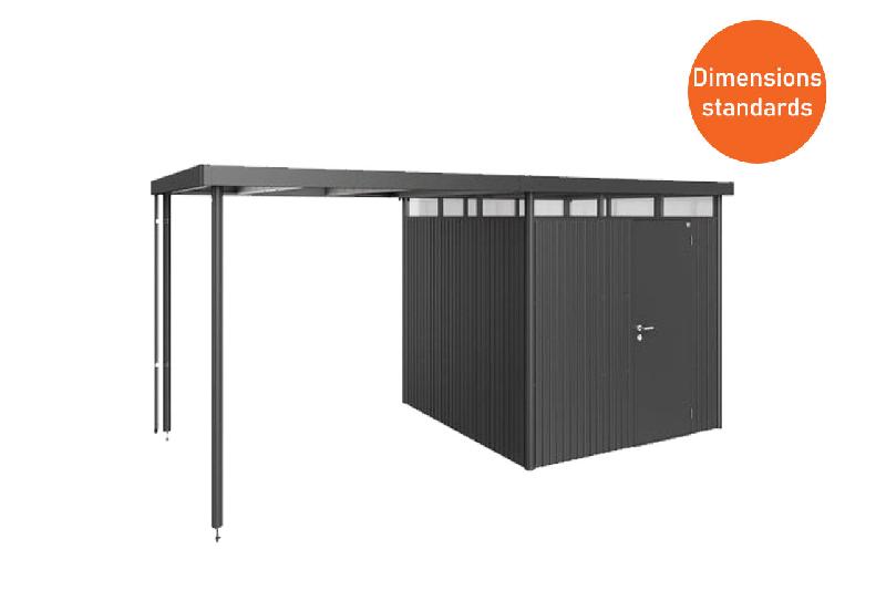 L'abri plat avec auvent est la solution idéale pour ceux qui recherchent une combinaison parfaite entre fonctionnalité, style et durabilité. Avec son design moderne et ses matériaux de haute qualité, cet abri offre un espace de stockage spacieux et sécurisé pour vos outils de jardinage, équipements d'extérieur et autres articles essentiels.Sur demande, nous pouvons ajouter une double porte ou des fenêtres. Nous pouvons aussi vous proposer une base complète de fixation au sol.Caractéristiques principales :Les dimensions indiquées sont celles de l'abri fermé. Les dimensions du auvent varient selon celles de l'abri de cette façon:Pour un abri 275x195x222cm, auvent 282x195x222cmPour un abri 275x235x222cm, auvent 282x235x222cmPour un abri 275x275x222cm, auvent 282x275x222cmPour un abri 275x315x222 et 315x315x222cm, auvent 282x315x222cm