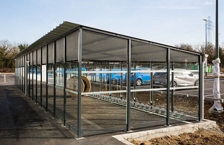 Abri vélo moderne - Conviviale - porte-à-faux, structure acier, toiture polycarbonate traité anti-UV
