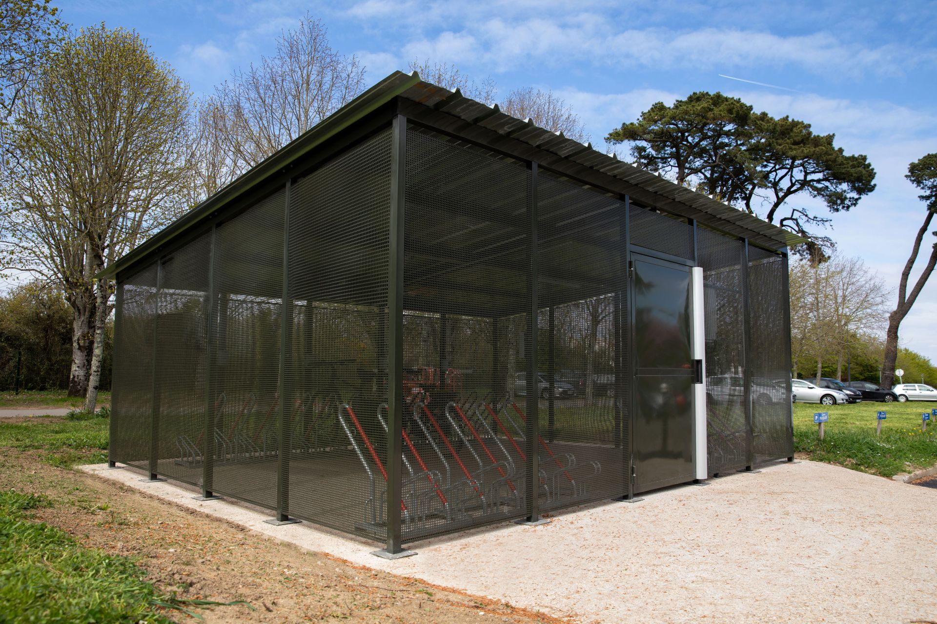 Avec son habillage en grillage, notre abri s’intègre parfaitement à votre environnement tout en offrant un haut niveau de sécurité.