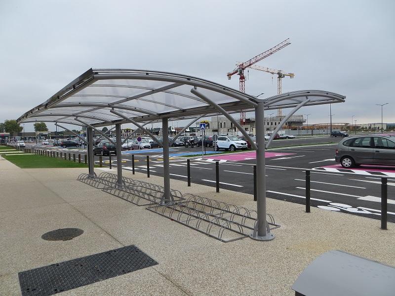Modèle PERGOLA, un abri vélo collectifSobres et fonctionnels, les modèles PERGOLA et GRAND PERGOLA peuvent s'utiliser dans de nombreuses configurations grâce à leur souplesse d'adaptation en tant qu'abri sécurisé collectif pour 2 roues et poussettes. - Module de base : 3 mètres pour 7 place