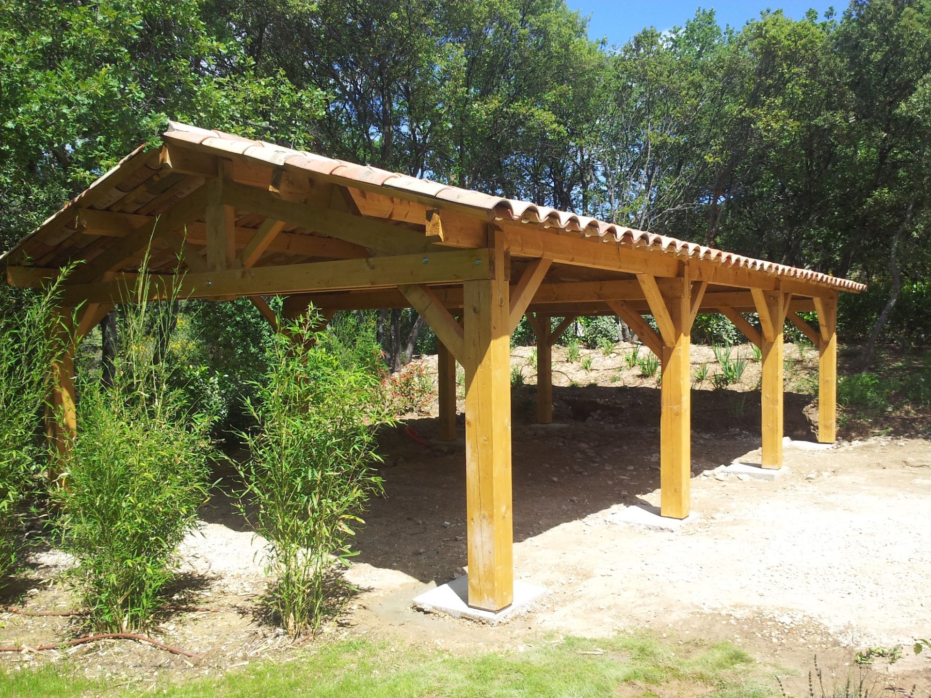 Techniquement, ces abris se composent d'une structure reposant sur des piliers en béton enduit ou des poteaux en bois massif. La toiture, selon vos préférences, peut avoir de 1 à 4 pans avec une couverture en tuiles, bac acier ou en ardoise. Les matériaux utilisés varient de l'acier au bois en passant par les tuiles, l'ardoise ou encore le bac acier. Le tout respecte scrupuleusement les normes CTB P+ et NF B50-100-3. Et cerise sur le gâteau: chaque construction bénéficie d'une garantie de 10 ans!