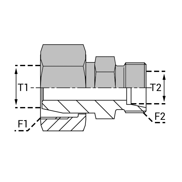 Caractéristiques : - DESIGNATION : FTUM 08L/06L NE - Tube / Pipe / T1 (mm) : 8.0 - Filetage F1 : 14X150 - Tube / Pipe / T2 (mm) : 6.0 - Filetage F2 : 12X150 -