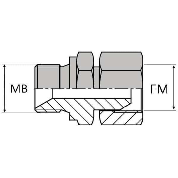 Adaptateur droit mâle BSP x femelle tournant DIN - 5/8' , 22.91 , 26X150