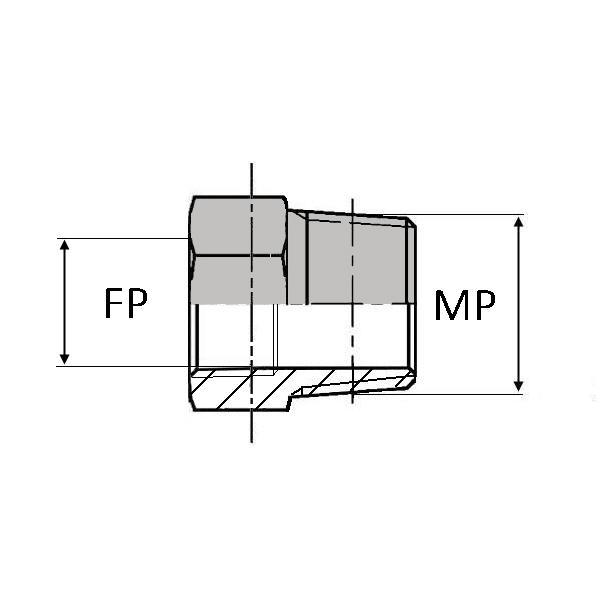 Caractéristiques : - DESIGNATION : TFNPT OR 1/8 / MNPT1/8 - Ø FP (inch) : 1/8' - Ø FP (mm) : 10.24 - Ø MP (inch) : 1/8' - Ø MP (mm) : 8.48