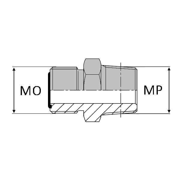Adaptateur droit mâle ORFS x mâle NPT - MORFS9/16 / MNPT1/8 - Ø MP 1/8' - Ø MO 9/16'