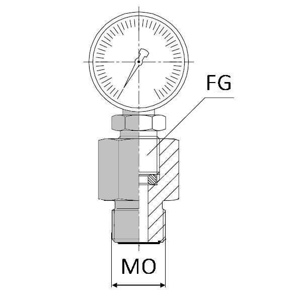 Adaptateur mâle ORFS x femelle gaz cylindrique manomètre - OMFGMA0406 - MORFS9/16 / FG1/4 MANO