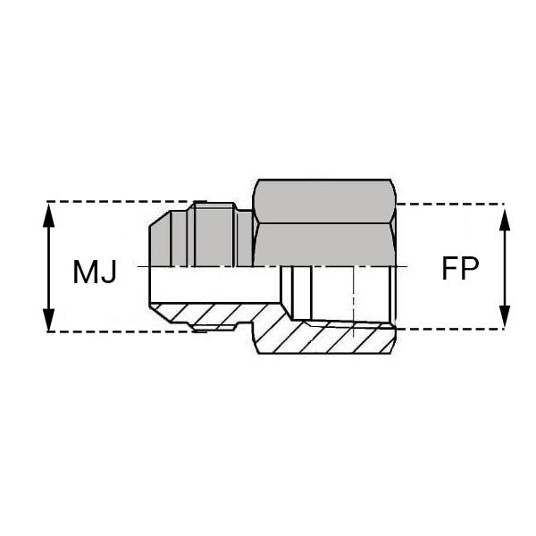 Caractéristiques : - DESIGNATION : FJ7/8 / FNPT1/2 - Ø FJ (inch) : 7/8'' - Ø FJ (mm) : 20.26 - Ø FP (inch) : 1/2'' - Ø FP (mm) : 17.81