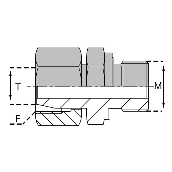 Caractéristiques : - DESIGNATION : FTMT 06S/12X150 JE - Tube / Pipe / T (mm) : 6.0 - Filetage F : 14X150 - M (mm) : 12X150 - USP 1 : Avec joint élastomère encastré -