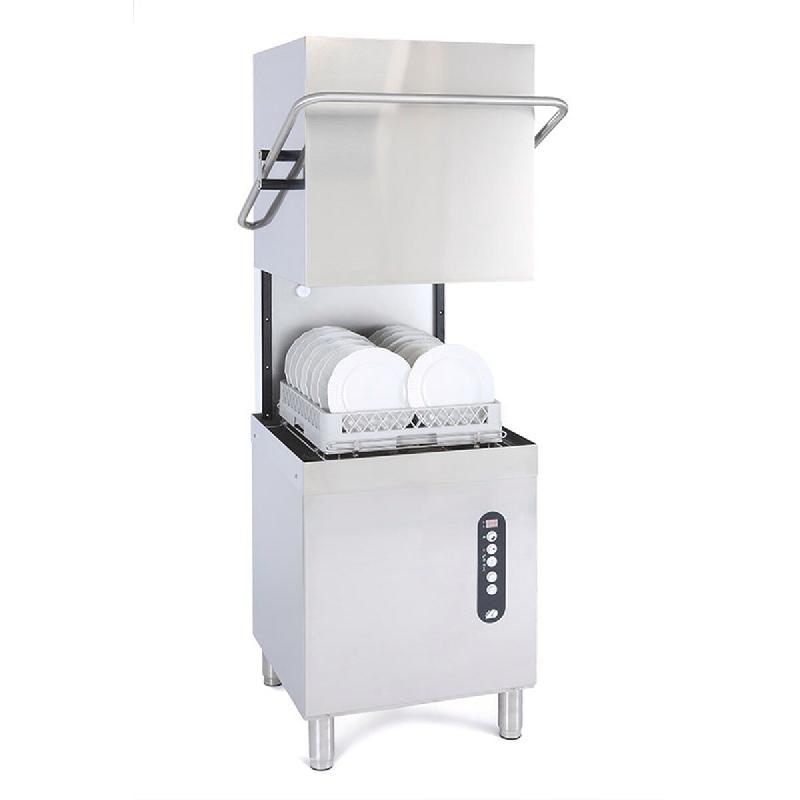 Lave - vaisselle à capot ADLER panier 50x50 cm série EVOLINE. - Lave - vaisselle avec carrosserie en acier inoxydable AISI304 avec finition scotch brite pour faciliter le nettoyage. - Cuve emboutie, carrosserie simple paroi et porte en double paroi avec poignées ergonomiques. - Commandes élec
