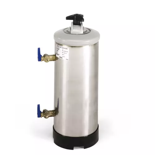 DVA8 - Dimensions : 185 x 185 x 400 mm Capacité en résine : 8 litres Matériau : Acier inoxydable Robinets : Laiton Installation : Sur réseau