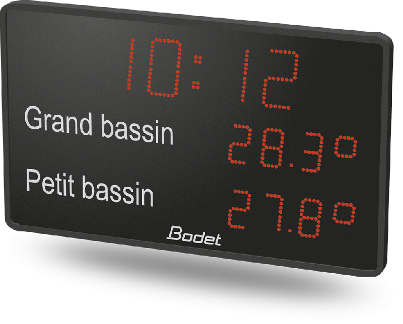 Afficheur piscine heure/température à LED - BODET - alimentation 230V, Radio HF, affichage heure/température