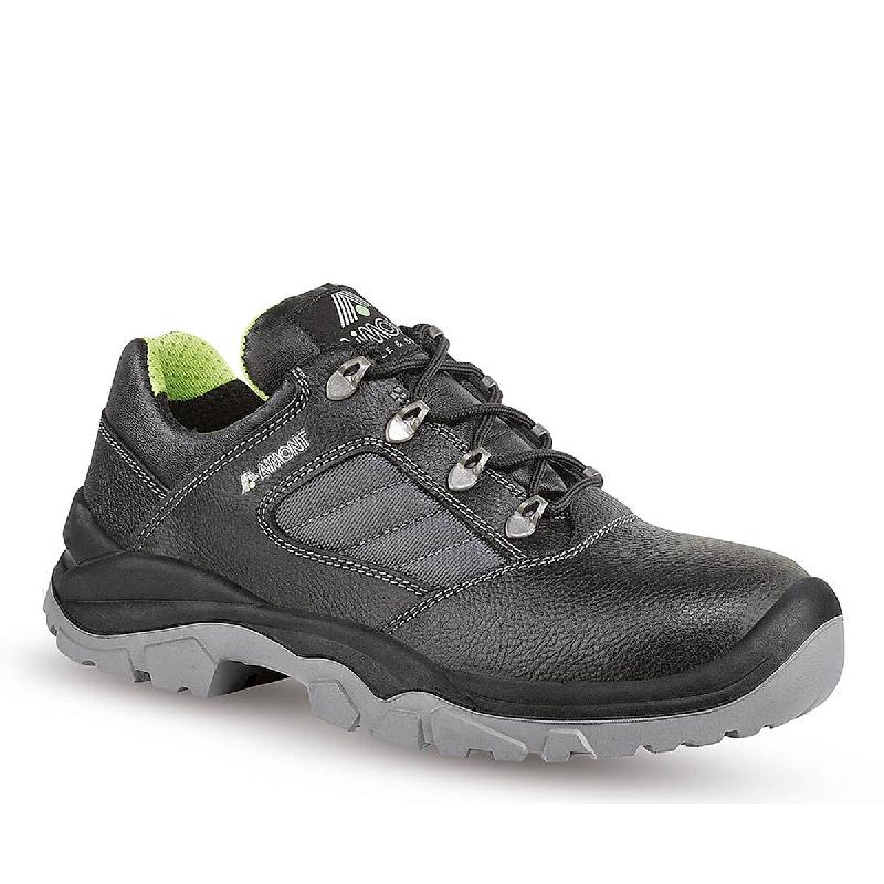 La chaussure de sécurité basse AIMONT Roboris S3 SRC est idéale pour les travailleurs exigeants en matière de protection. - Vue d'ensemble : - Tige : En cuir grainé hydrofuge d'une épaisseur de 1.9mm à 2.1mm. - Renfort de protection en polyuréthane au niveau de la pointe de pied. - Chevi