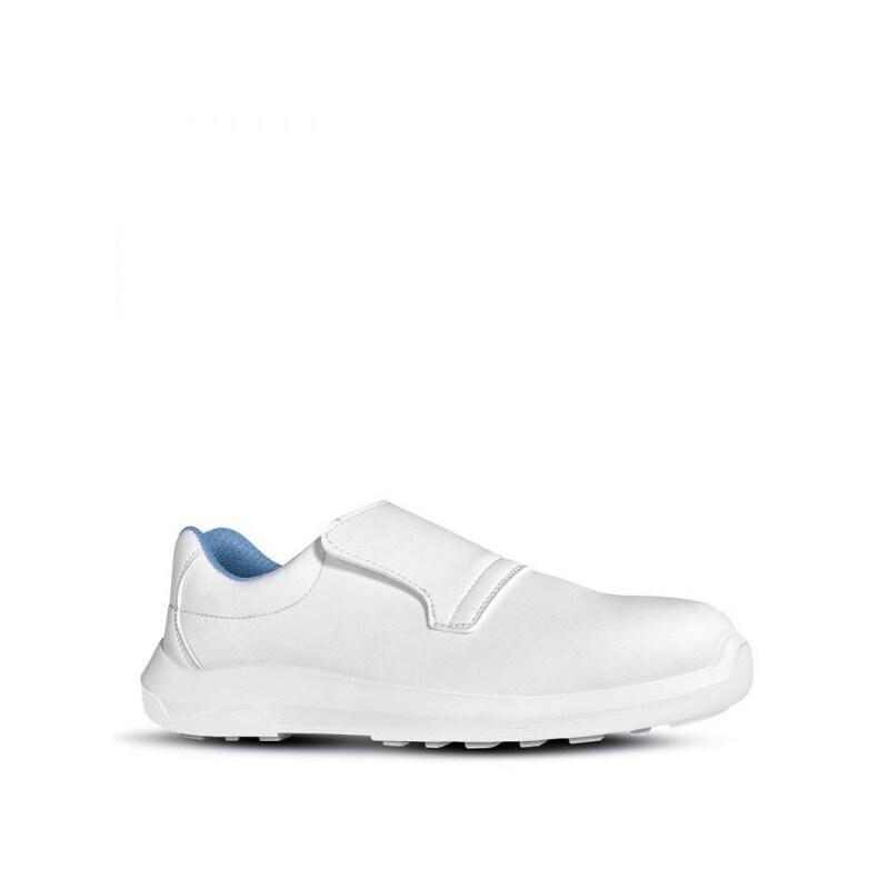 Les chaussures de sécurité basses hydrofuges et antidérapantes GLACE de la marque U - Power sont conçues pour les environnements humides. Elles font partie de la ligne Red Lion et offrent légèreté et confort. Ces chaussures sont totalement "sans métal" et sont de couleur blanche, sans lacets