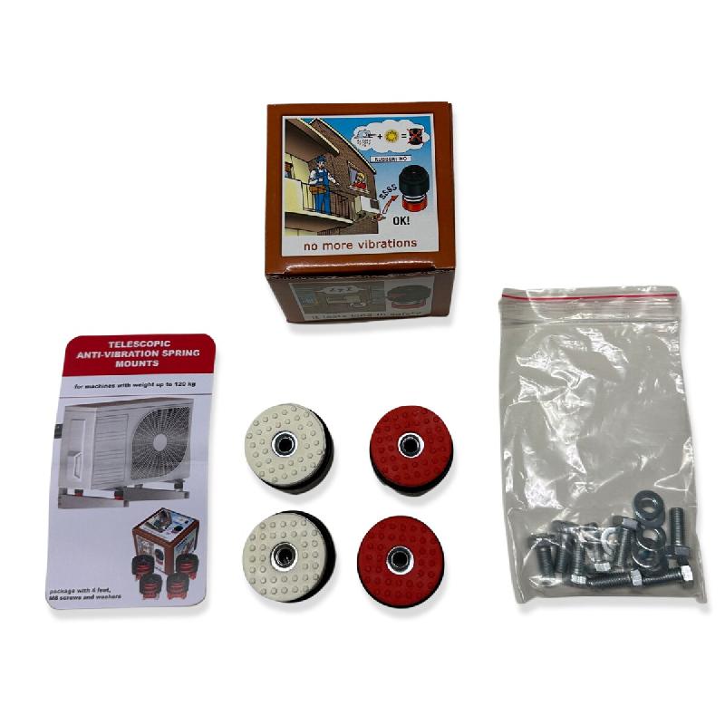 Ce kit de vibration a un très bon effet d'amortissement des vibrations. - Les amortisseurs sont équipés de ressorts en acier qui absorbent les vibrations de l'unité extérieure. - Ce kit de vibration est utilisé avec des supports muraux et des poutres de montage. - La force des ressorts est