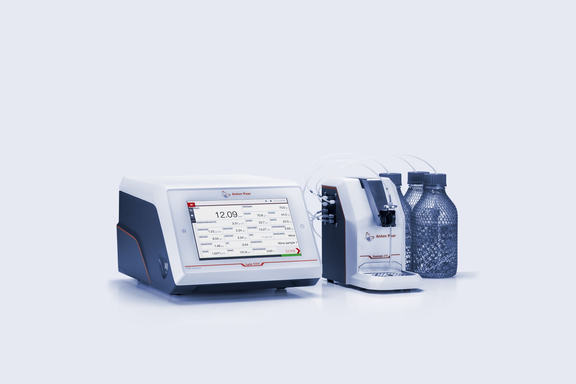 Le nouvel analyseur IRTF multi-paramètres Lyza 5000 Wine est votre solution pour l'analyse du vin, du moût et du moût en fermentation. Des mesures rapides avec de nombreux paramètres vous permettent de disposer de toutes les informations dont vous avez besoin au cours de toutes les étapes de la production de vin. Grâce à une configuration rapide et à des modèles préinstallés, tous les résultats importants relatifs à l'analyse du vin, y compris l'éthanol, les sucres et le profil acide, sont à portée de main. Le Lyza 5000 Wine peut être utilisé en tant qu'appareil autonome, automatisé pour un débit élevé, ou connecté à vos instruments de référence - densimètres et alcoomètres Anton Paar - pour une analyse des vins des plus puissantes.