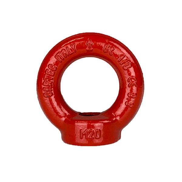 Anneau de levage femelle Haute Résistance Grade 80 - CMU : - De 0,2 à 18 Tonnes. - Dimensions : - De M6 x 1.00 à M48 x 5.00. - Caractéristiques : - Cet anneau possède un méplat pour le passage du coupleur ou d'une cosse. - Il est taraudé en standard ISO. - Matière : Acier allié, gra