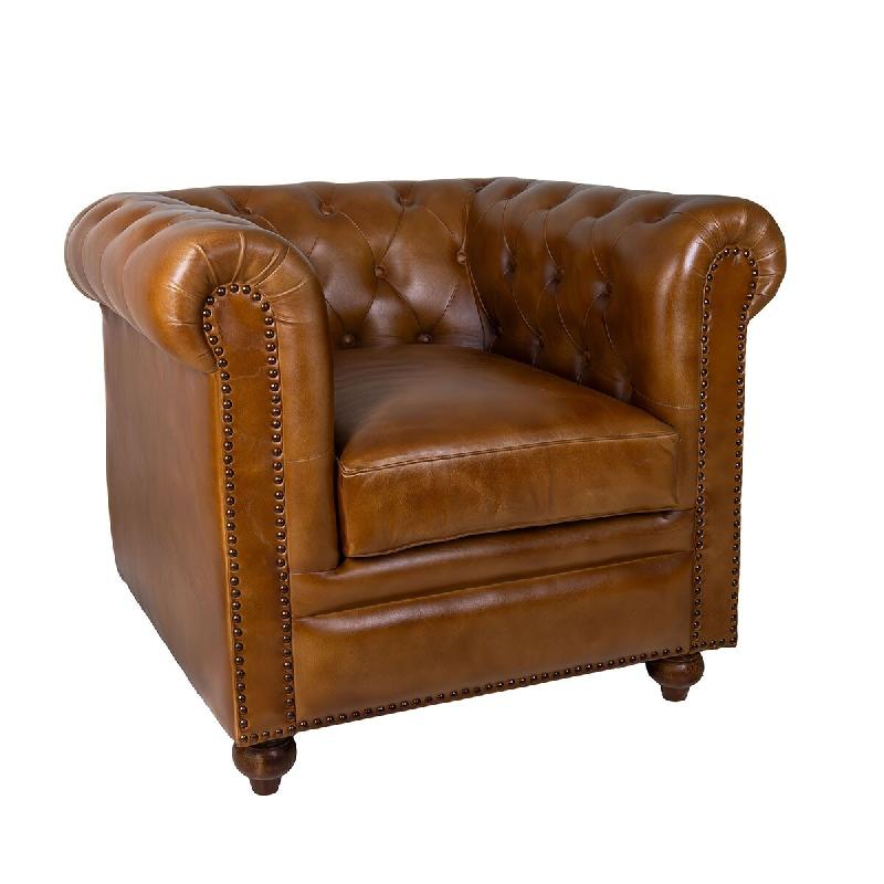 ANTIC LINE CREATIONS Fauteuil Chesterfield cognac - marron cuir CS1633