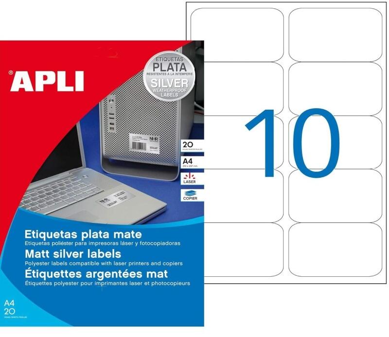 Apli 015030 Lot de 200 Etiquettes polyester laser/copieur 96 x 50,8 mm Argent - 8410782150305