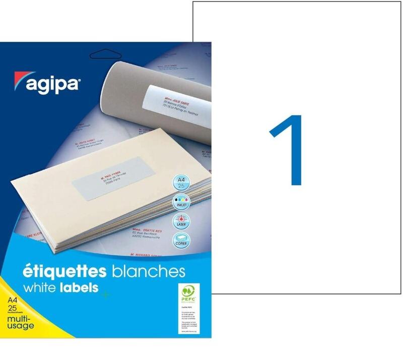 Étiquette multi - usage blanche Compatibilités : - Imprimantes jet d'encre - Imprimantes laser - Copieurs - Caractéristiques : - Garantie : aucun risque de bourrage grâce à l'adhésif résistant aux hautes températures. - Produit éco - responsable : certifié FSC. -