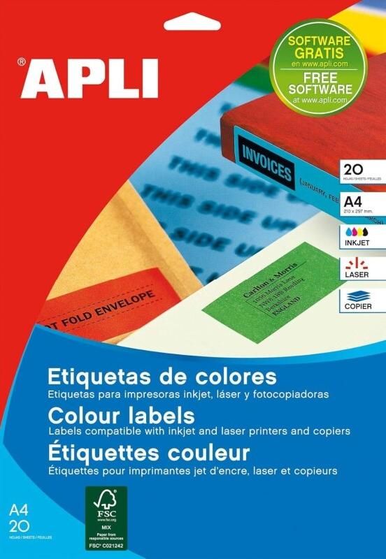 Apli 280 étiquettes jaunes multi-usage, format 99,1 x 38,1 mm (20 feuilles A4 / cdt) - 8410782146001