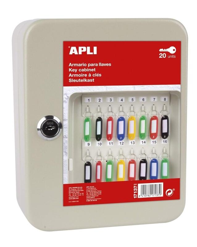 Apli Armoire à clés pour 20 clés, en acier peinture mate gris clair - 8410782171379