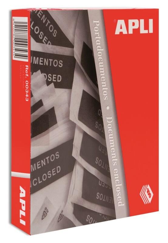 Apli Boîte de 100 pochettes adhésives 'Documents ci-inclus' 240x140, marquage sur fond rouge - 8410782014676