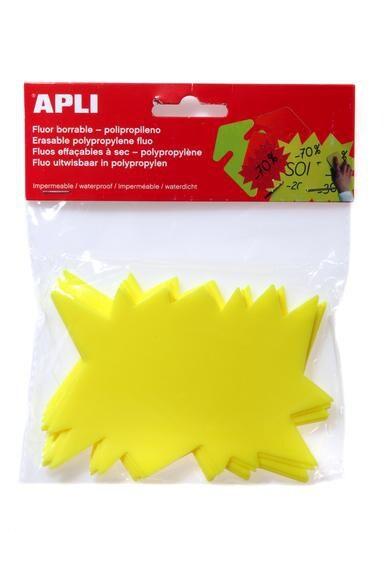 Apli Lot de 10 étiquettes polypro, forme éclaté 8x12, coloris jaune fluo - 3270241020519