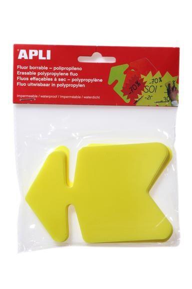 Apli Lot de 10 étiquettes polypro, forme flèche 8x12, coloris jaune fluo - 3270241020557