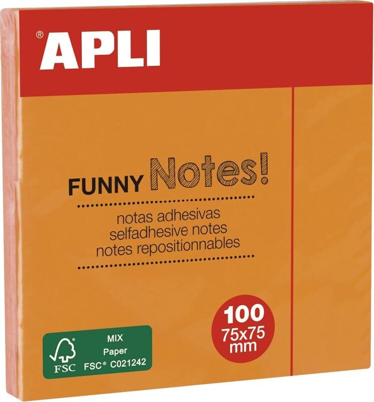 Apli Lot de 12 Bloc de 100 notes adhésives 75x75 orange fluo - 8410782119005