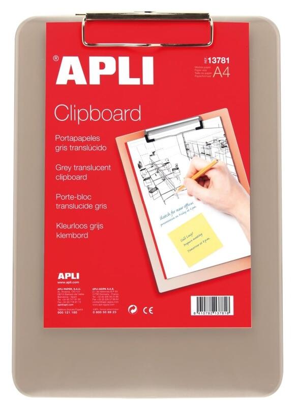 Apli Porte-bloc A4, en plastique gris transparent - 8410782137818