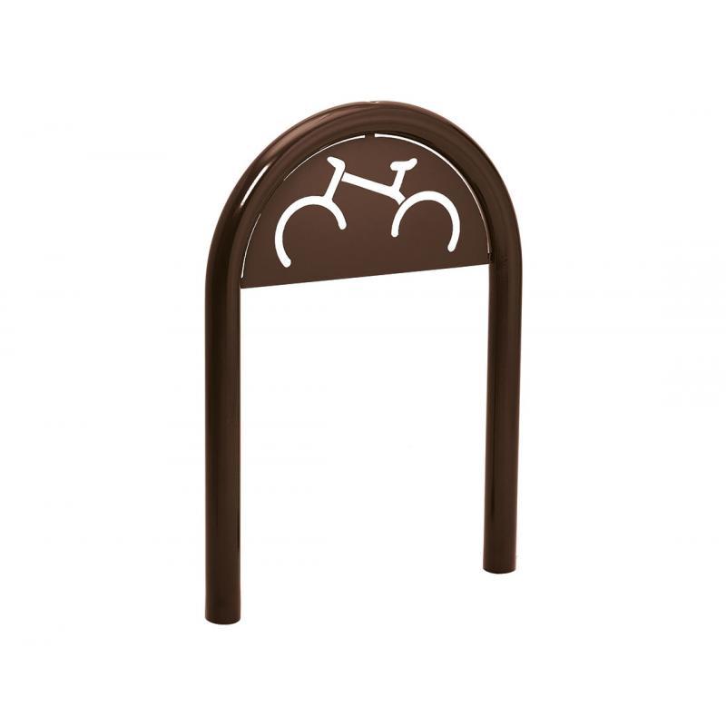Support cycles universel, peu encombrant sur les trottoirs - Tôle signalétique découpée au plasma, épaisseur 3mm. - Tube acier, diamètre 60mm. - Hauteur hors sol : 1000mm. - Largeur : 625mm. - Finition : peint sur galva selon nos coloris (nous consulter). - Fixation : par scellement dire