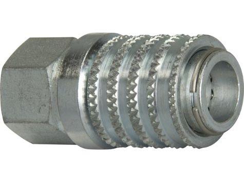 Coupleur Micro Matic Femelle 1'' NPT / Femelle 1/4'' NPT en Inox 304 - joint Viton (FPM). - Totalement étanche - Système de blocage du levier - À utiliser avec les bondes 3 broches pour le remplissage de liquides en circuit fermé. - Débit de 90 L/min - Compatibles avec une large gamme de