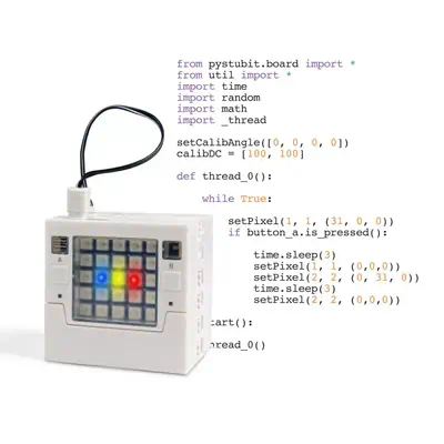 - Carte programmable autonome : Intègre un processeur ESP32 et de nombreux capteurs (LED, accéléromètre, etc.).