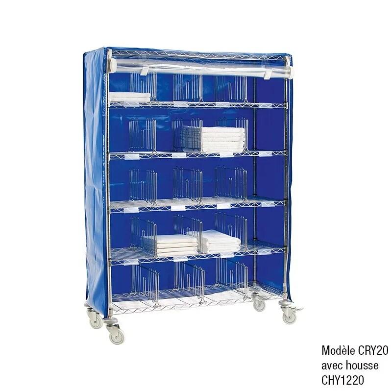 Ce chariot permet le tri du linge par résident, ouvert sur 2 côtés avec des séparations amovibles. Dimensions extérieures : 1525 x 455 x hauteur 1780 mm - Capacité : Existe en 8, 10, 12, 15, 16, 25, 30 casiers - Options : - Penderie - Housse - Domaine d'utilisation :
