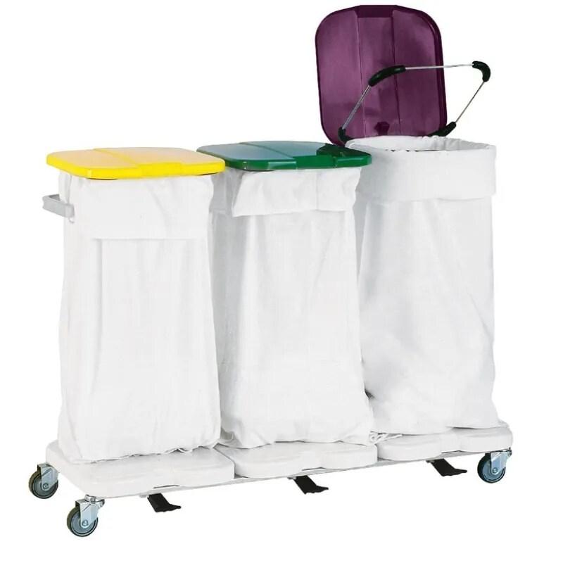 Sclessin 374.775S Chariot Porte - Sacs 3 Sacs Avec Couvercles Professionnel est un chariot professionnel conçu pour le tri sécurisé des déchets grâce à ses 3 compartiments avec couvercles et sa structure robuste de 21 kg. - Délai de livraison : 2 - 5 jours ouvrés